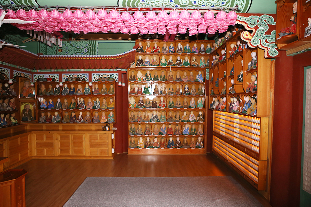 <법화경>의 오백제자 수기품에서는 부처님께서 오백명의 나한을 위하여 특별히 수기를 베푸는 모습이 상세히 설명되어 있고 깨달은 이들은 더 이상 생사윤회의 흐름에 태어나지 않으므로 최고의 깨달음을 이루었다고 하며 매우 덕이 높은 성자로 그 영험함과 신비함이 오늘에 이르러 변함이 없기 때문일 것입니다. 유구한 역사를 간직한 천년의 고찰 정수사는 지역신앙의 영장으로 성역화 할 것을 천명하고, 그 사업의 일환으로 설법전으로 오백나한을 모시는 조성불사를 발원하였습니다.
